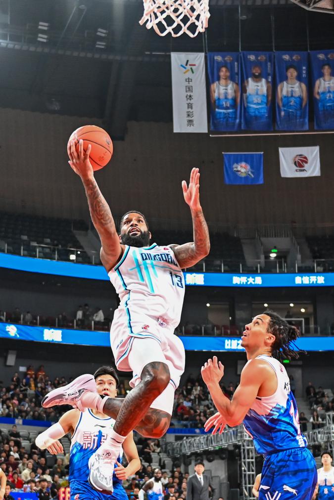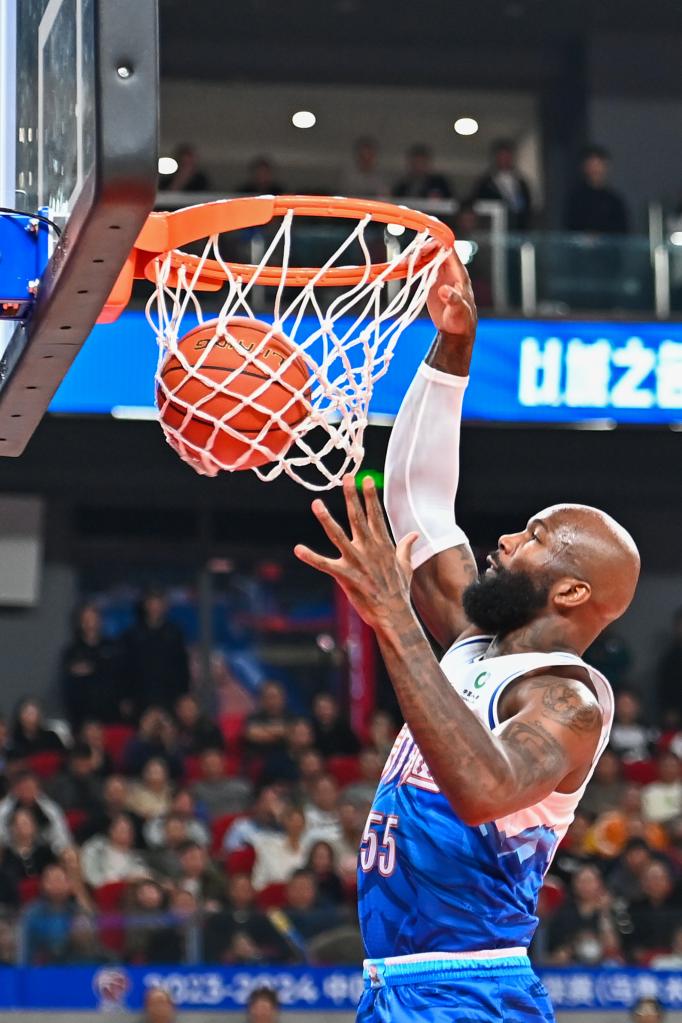 10月31日,新疆伊力特队球员琼斯在比赛中扣篮。