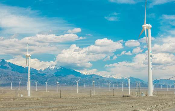 乌鲁木齐达坂城区风机为亚欧博览会提供源源不断的绿色动能。王晋魁 摄