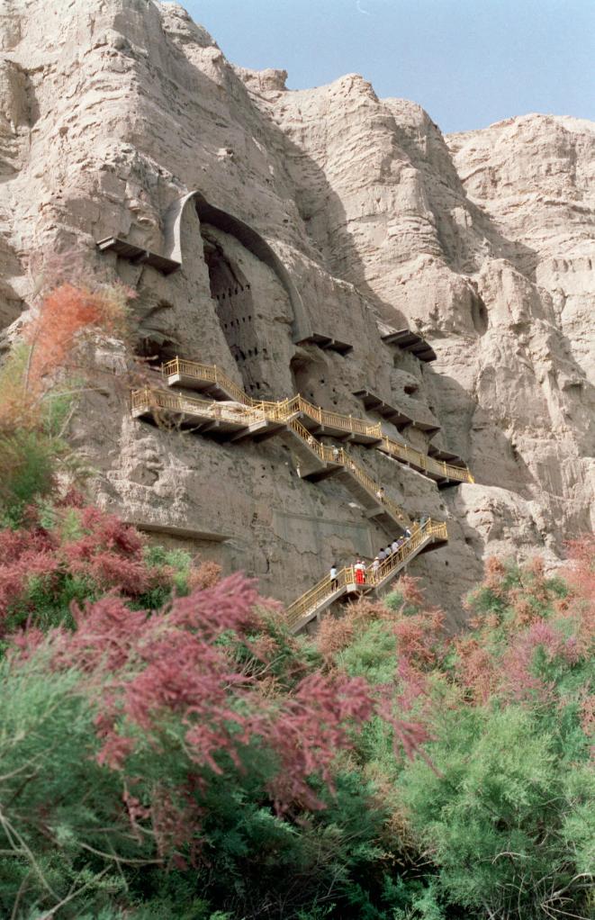 克孜尔石窟位于新疆阿克苏地区拜城县,大约开凿于公元3世纪,是中国开凿最早、地理位置最西的大型石窟群。该石窟在1961年被公布为第一批全国重点文物保护单位,2014年,克孜尔石窟作为“丝绸之路:长安-天山廊道的路网”中的一处遗址点被列入《世界遗产名录》。