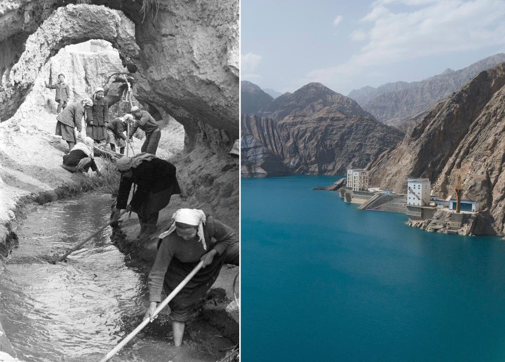 坎儿井被当地人称为“母亲河”,是荒漠地区利用地面坡度无动力引用地下水的一种独特地下水利工程。在以往漫长的岁月中,坎儿井通过一道道地下暗渠引来冰雪融水,滋润养育当地各族儿女。新疆的坎儿井总长度曾达到5000多千米,与万里长城、京杭大运河并称为中国古代三大工程。然而,随着人口数量增加、耕地面积扩大、工业用水增多,坎儿井已不能满足激增的用水需求。如今,一项项新的水利工程建成落地,带来丰沛水源。