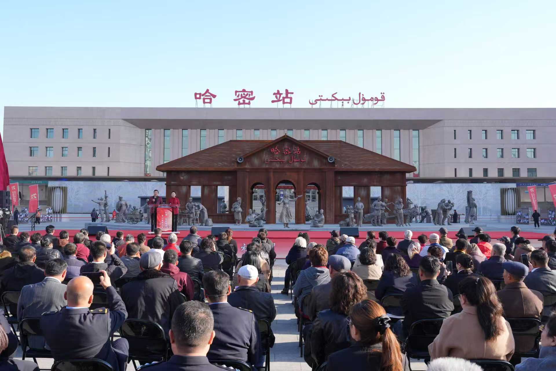 活动现场,1987年“哈密精神”亲历者代表、2024年“哈密精神”传承者代表、老干部代表、援疆干部代表、社会各界代表等与哈密各族群众齐聚哈密火车站站前广场,共同见证“哈密精神”情景式公共艺术作品落成,在空间还原和情景重构中穿越时空,“重返”1987年哈密各族群众无私援助滞留旅客的感人时刻和2024年再次大规模援助滞留旅客的温暖瞬间,切身感悟“团结协作、无私奉献”的“哈密精神”。
