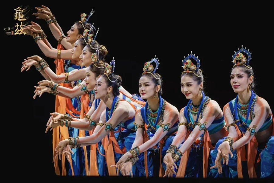 《龟兹》舞动,堪为世所瞩目。此前,已有多部作品尝试将龟兹乐舞搬上舞台。它们中有的聚焦于对壁画舞蹈姿态的考古式复原,致力于精准复刻克孜尔石窟壁画中的典型舞姿;有的以短篇群舞形式,凝练展现龟兹壁画的视觉意象与工匠精神,为受众了解和走近龟兹文化瑰宝做出了可贵的努力。