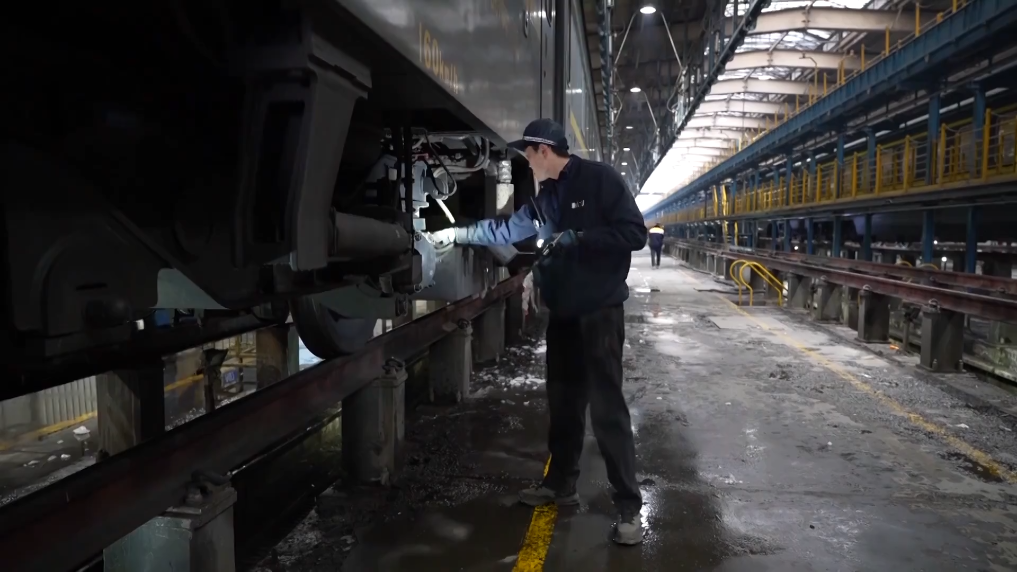 在乌鲁木齐客车基地,平均每天有32列、480辆普速客车,29列、252辆动车、动力集中式动车组列车在这里检修出库,乌鲁木齐车辆段重点对列车的走行部及基础制动装置等核心部件进行细致排查,确保每一处都经过全面的“体检”,保障冬季旅客列车的安全平稳运行。