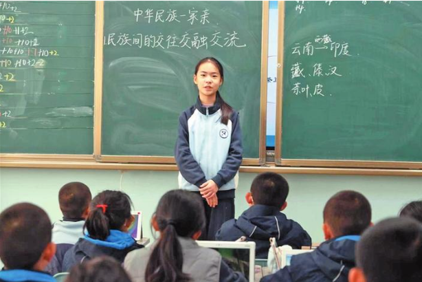 11月25日,贾蕊璐在二师华山中学为同学们讲老兵故事。李嘉成 摄