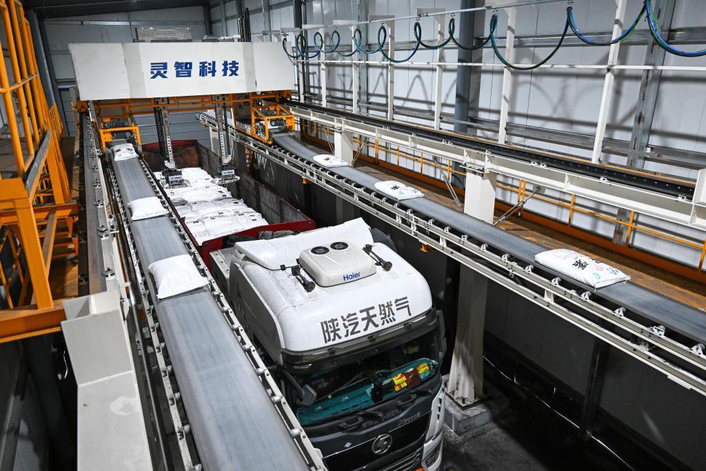 这是在新疆昌吉回族自治州玛纳斯县的新疆中能万源化工有限公司拍摄的自动化装车线(3月5日摄)。