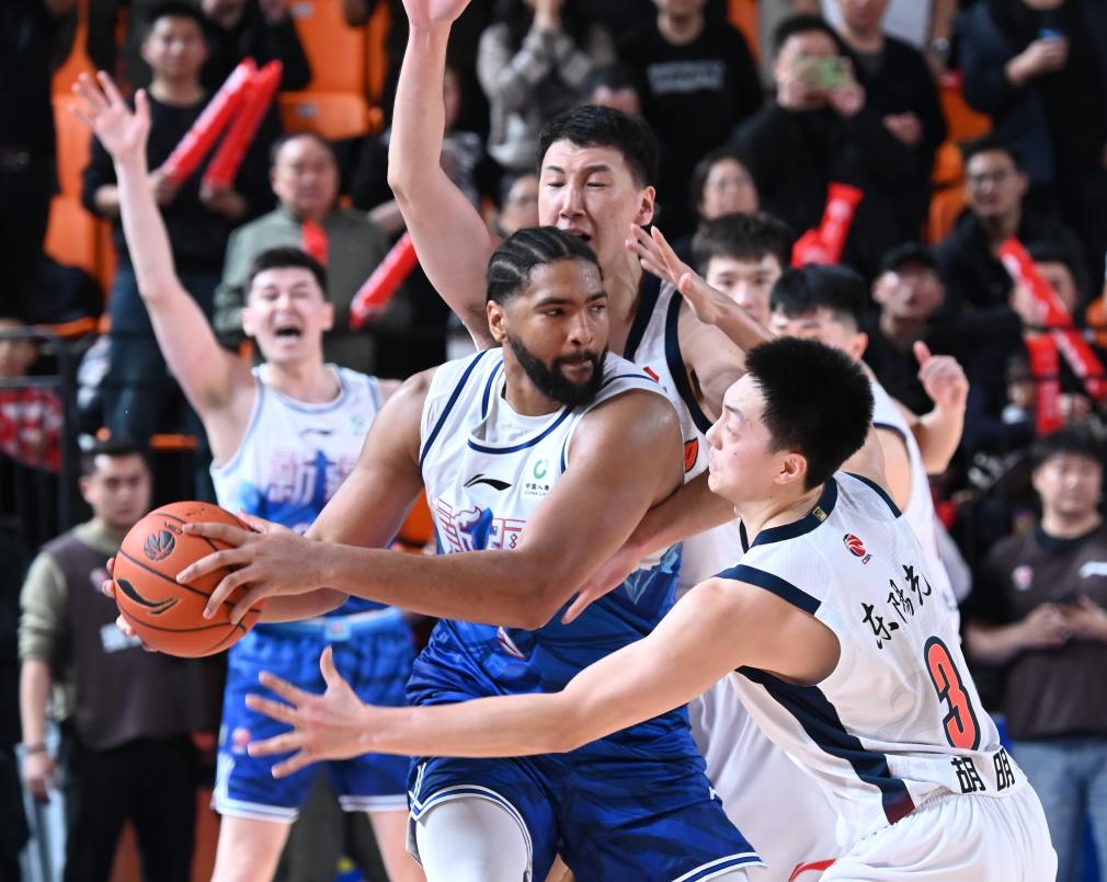 3月11日,在2025-2026赛季中国男子篮球职业联赛(CBA)常规赛第24轮比赛中,新疆伊力特队主场82比80战胜广东东阳光队。