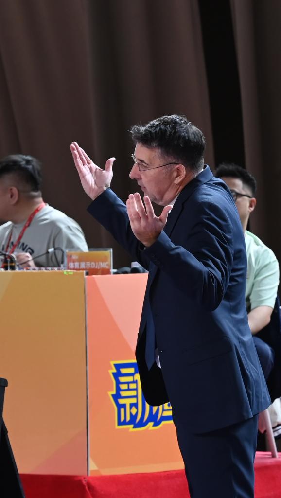 3月11日,新疆伊力特队主教练格兰在场边。新华社发(徐锐摄)