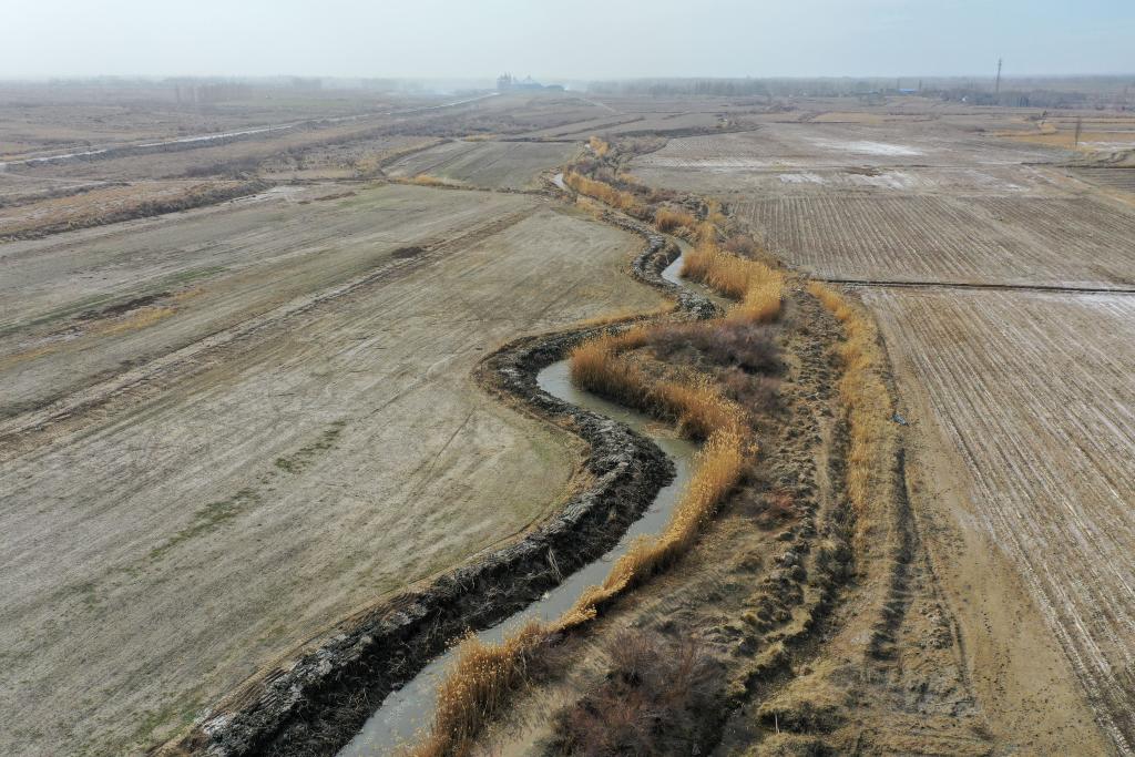 这是在新疆伊犁哈萨克自治州察布查尔锡伯自治县堆齐牛录乡拍摄的经过清理的河道(无人机照片,3月24日摄)。新华社记者 丁磊 摄