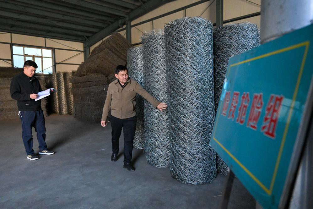 工作人员在新疆伊犁哈萨克自治州新源县防汛抗旱应急物资储备库清点物资(3月27日摄)。新华社记者 丁磊 摄