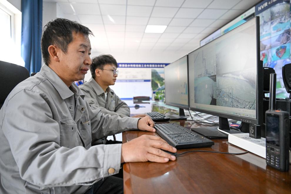 运管人员在新疆伊犁哈萨克自治州新源县恰普河水利枢纽调度室查看各点位监控(3月27日摄)。新华社记者 丁磊 摄