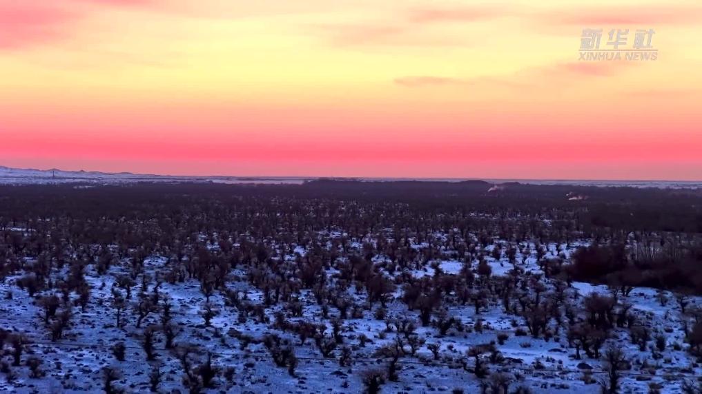 新疆库车:冬日晚霞绘就天山绝美画卷